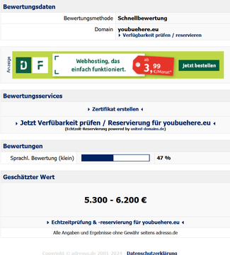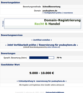 Ich habe diese über adresso.de bewerten lassen und bitte deshalb um realistische Angebote.